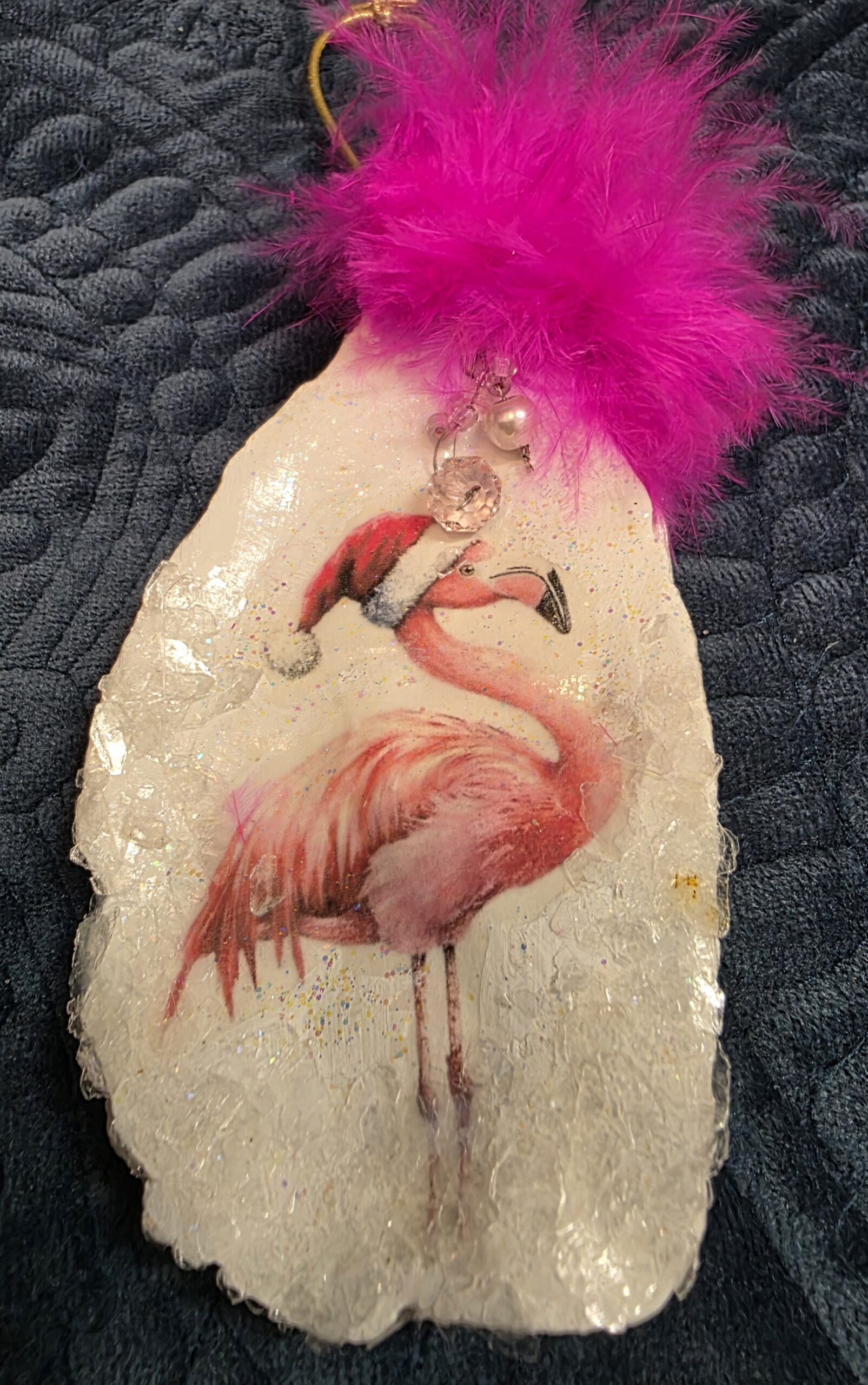 Bring a touch of Florida flair to your holiday decor! Transform a humble oyster shell into a dazzling, one-of-a kind flamingo ornament using rice paper decoupage. You'll add texture and whimsy by carefully applying vibrant feathers, charms, beads, and finishing touches like glitter or mica chips to give your piece that perfect sparkle and seaside charm. All materials provided..